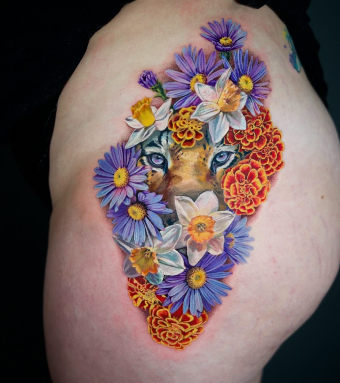 My preferred style is color realism, as I enjoy bringing vibrant, lifelike elements to my designs. While color is my main focus, I also take pride in creating striking black-and-gray pieces that tell a story.